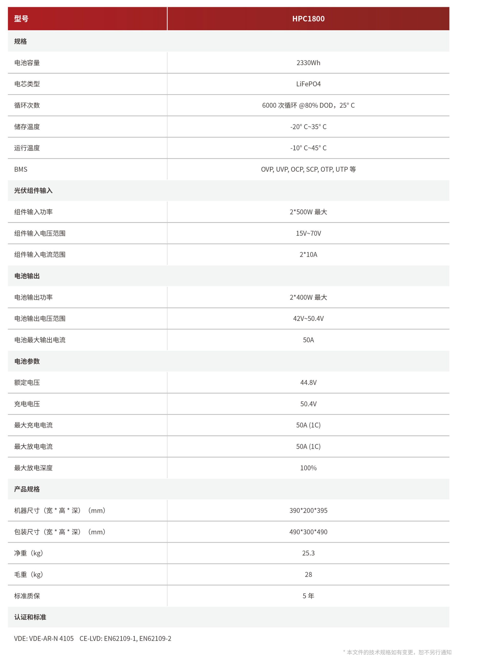 HPC1800 储能电池是专为阳台储能系统设计。兼容 MUST PM 系列微型逆变器,内置 MPPT 太阳能充电控制器,HBP1800 在日间或夜间为微型逆变器提供电力,为家庭节省电费,促进清洁能源的使用。