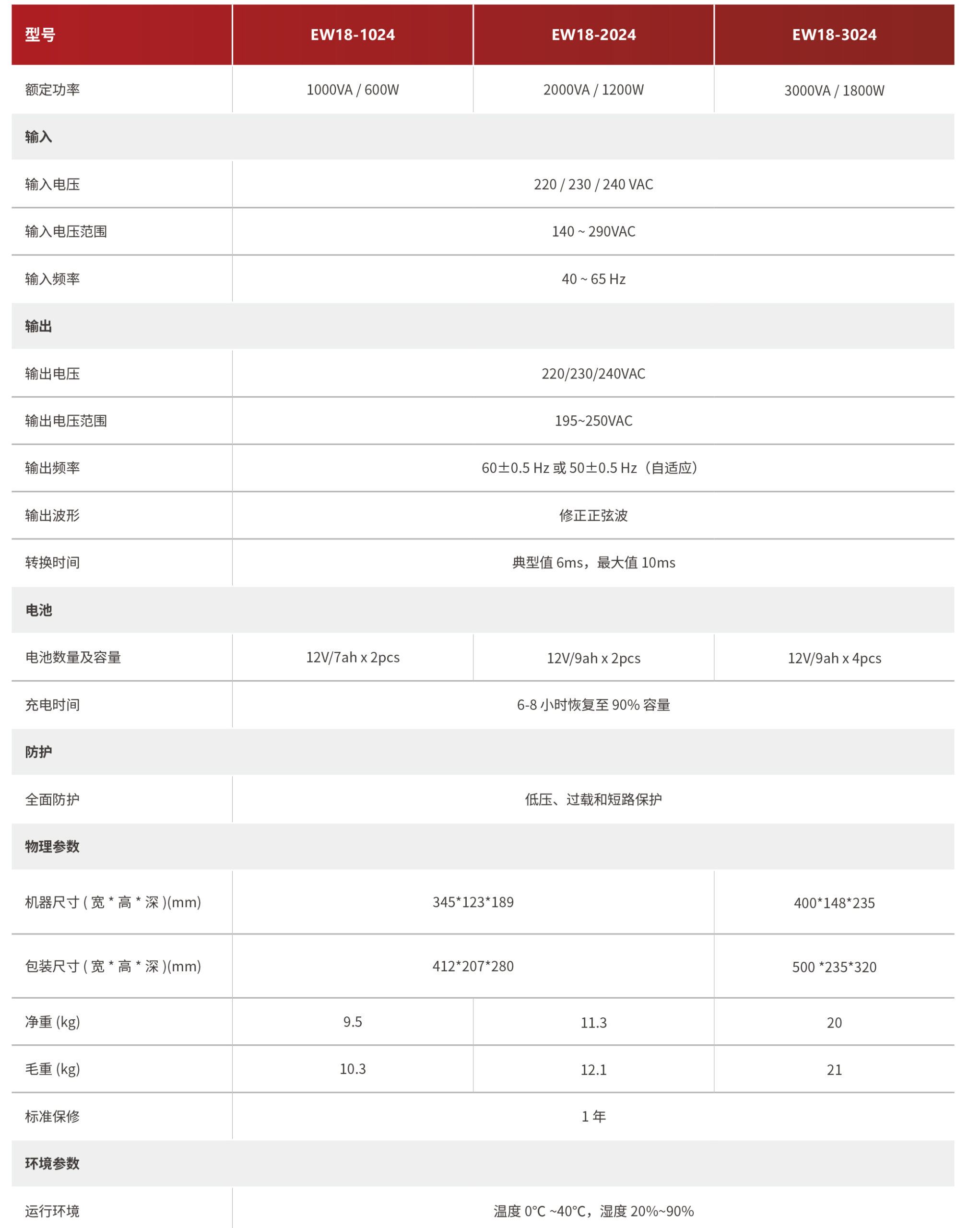在线互动式 UPS(修正正弦波) EW1800系列