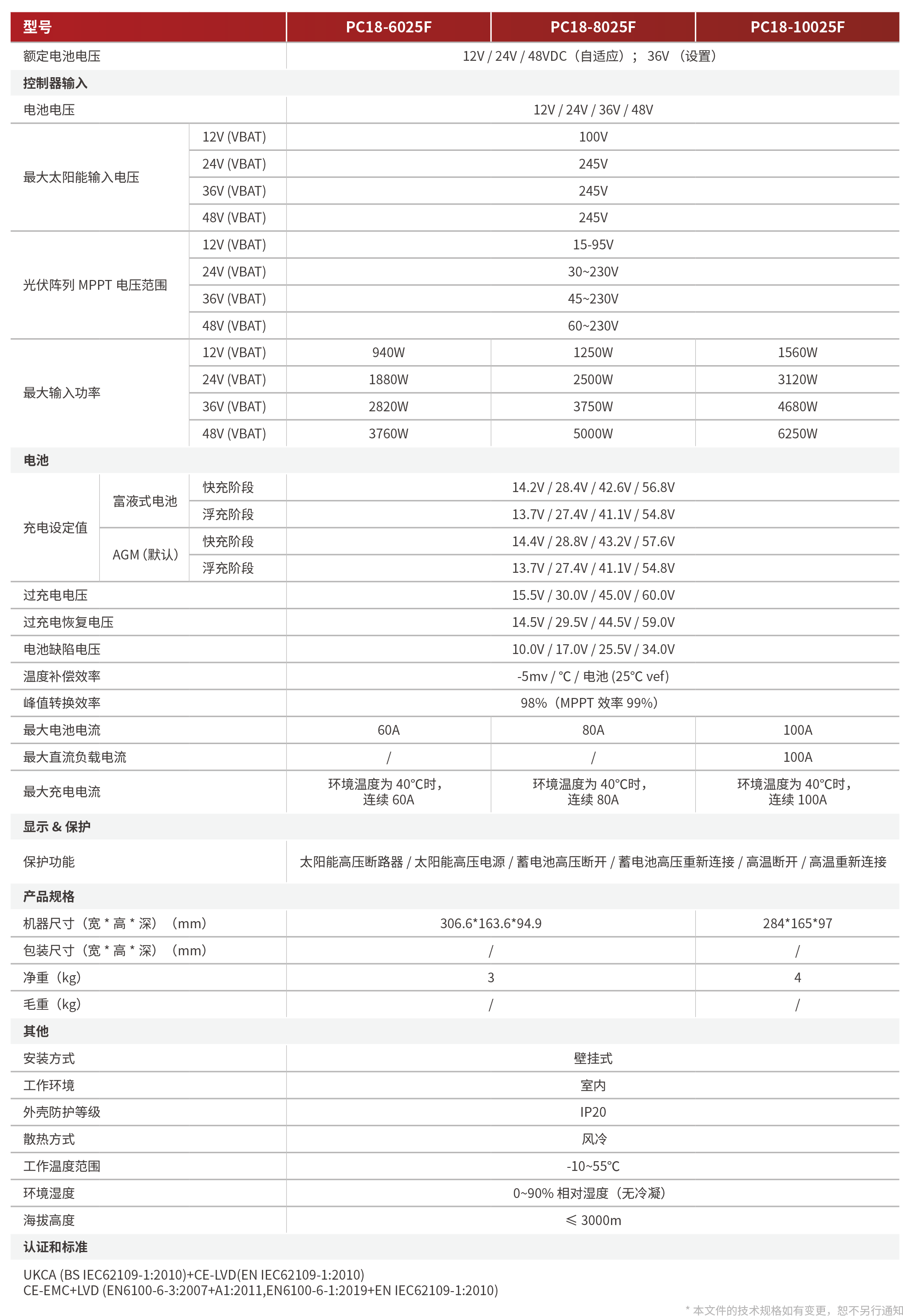 PC1800F 系列是一款 风冷式 MPPT 太阳能充电控制器,具有高效 MPPT 控制算法,能快速追踪到光伏阵列的最大功率点,大幅度提高了太阳能的利用率。
